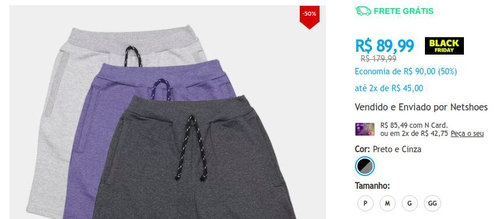 R$ 89,99 à vista ou 2x R$ 45,00.