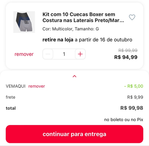 Pra mim saiu, 95 reais… valeu demais!! Marca de cueca muitoo boa