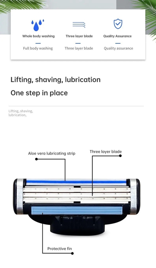 A lâmina de três camadas da navalha garante um barbear suave e fechado, deixando a pele macia e suave.