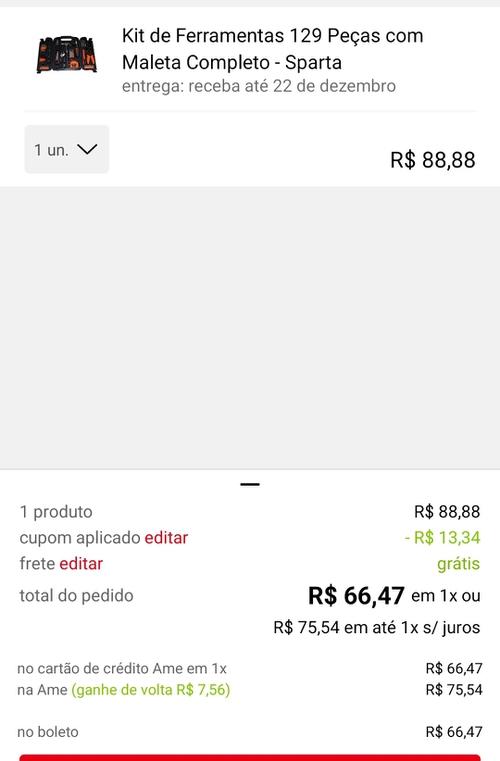 Preço no aplicativo, frete grátis.