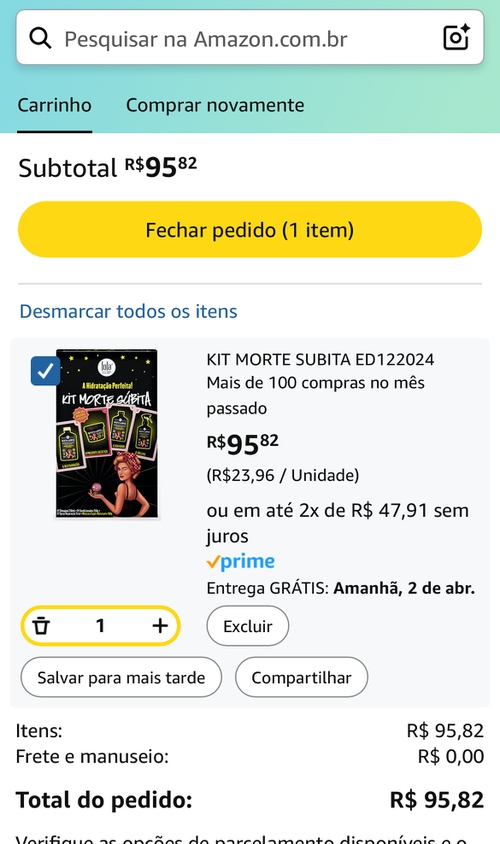 Quando coloca no carrinho fica 95 reais🤷🏼♀️!