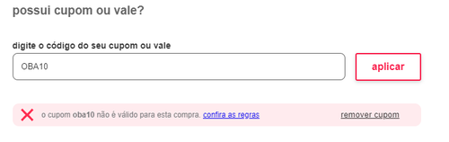 O cupom não funcionou aqui. 😢