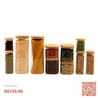 Kit pote hermético de vidro Oikos tampa de bambu 11 pecas