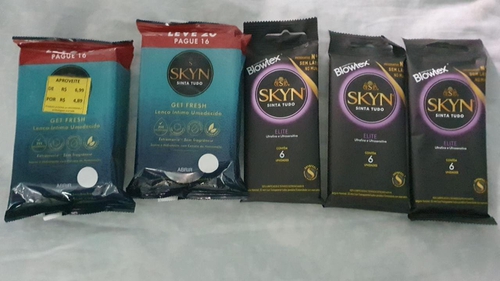 Kit Preservativo Blowtex Skyn Elite 3 Pacotes + Lenço Íntimo Umedecido Skyn Get Fresh 2 Pacotes