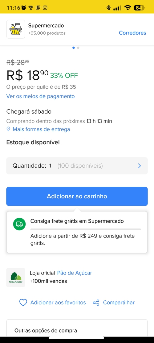 Ah não, não vale, tem frete... só se for fazer compra de mercado e add mais coisas, mas o pão de açúcar é tudo.mais caro... ESFRIANDO PROMOCAO...