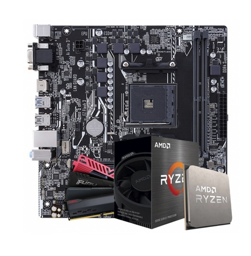 KIT UPGRADE AMD PLACA MÃE A520 AMD AM4 + PROCESSADOR AMD RYZEN 5 5500, 3.6GHz, (4.2GHz TURBO) + MEMÓRIA DDR4 16GB