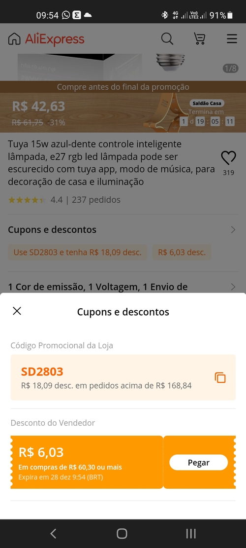 Aqui apareceu um cupom de R$11,00 e está saindo por R$31,46