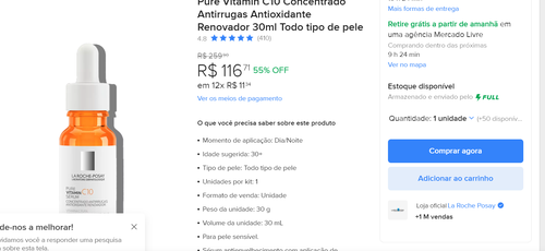 La Roche Posay Sérum Anti idade Pure Vitamin C10 Concentrado Antirrugas Antioxidante Renovador 30ml Todo tipo de pele