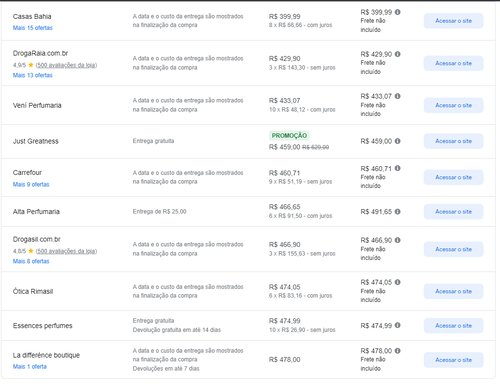 Menor preço segundo o Google Shopping