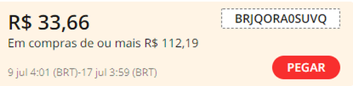 Código BRJQORA0SUVQ com R$ 33,66 de desconto