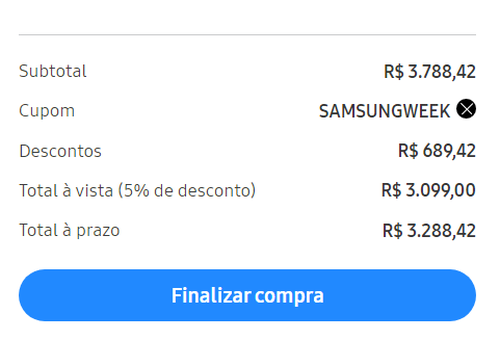 O valor do desconto reduziu. Agora os valores são R$ 3.299,00 no PIX e R$ 3.488,40 parcelado