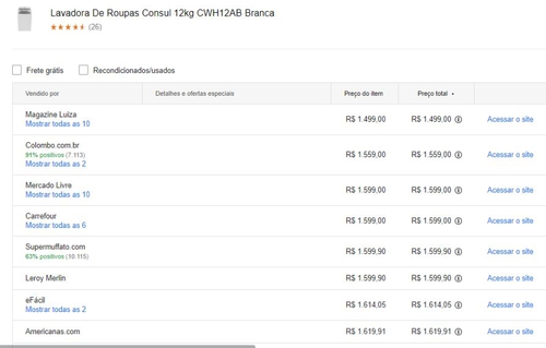 Comprei em janeiro de presente para minha esposa por 1250 e frete grátis no site da consul