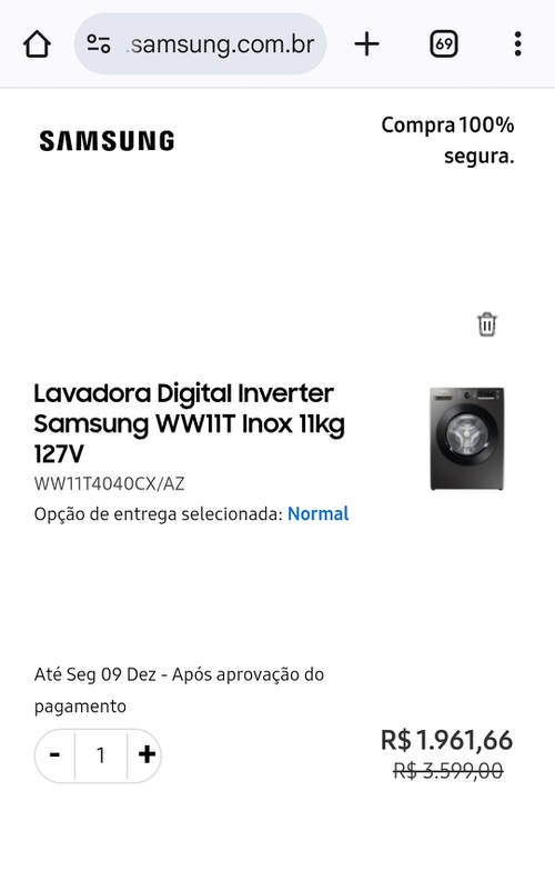 Lavadora Digital Inverter Samsung WW11T Inox 11kg
