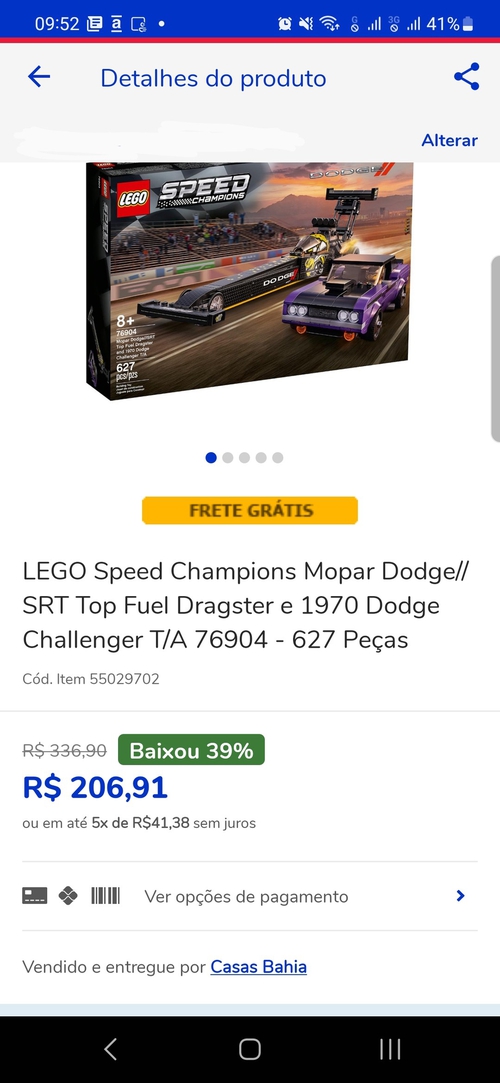 LEGO Speed Champions Mopar Dodge/SRT Top Fuel Dragster e 1970 Dodge Challenger T/A 76904 - 627 Peças