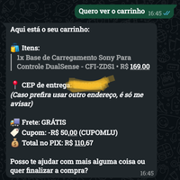 2- Digite e envie "comprar". Deve aparecer que você ganhou um cupom de R$ 50