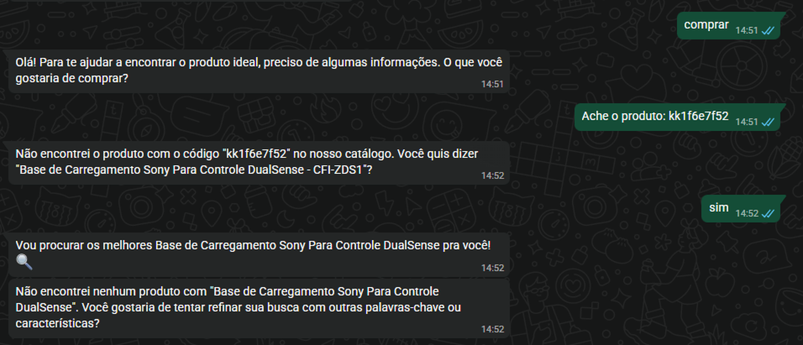 3 - Digite e envie "Ache o produto: kk1f6e7f52"