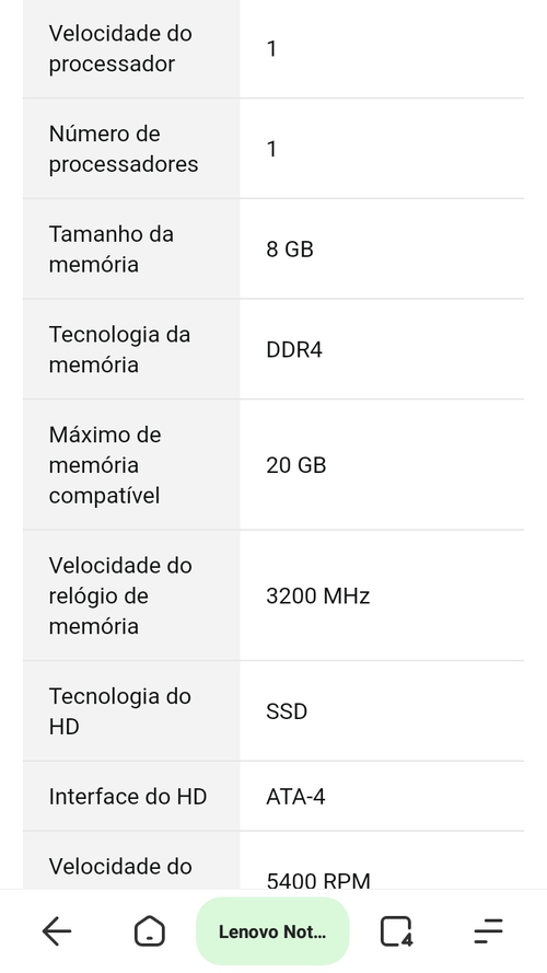 Olha a memória ram, tem capacidade máxima de 20 GBPaguei isso no meu IdeaPad 3 com rtx 3050ti e tela 120hz.