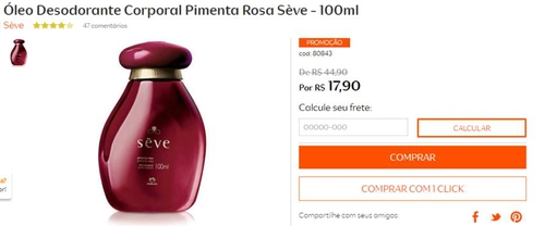 Óleo Desodorante Corporal Pimenta Rosa Sève - 100ml - Natura - R$18