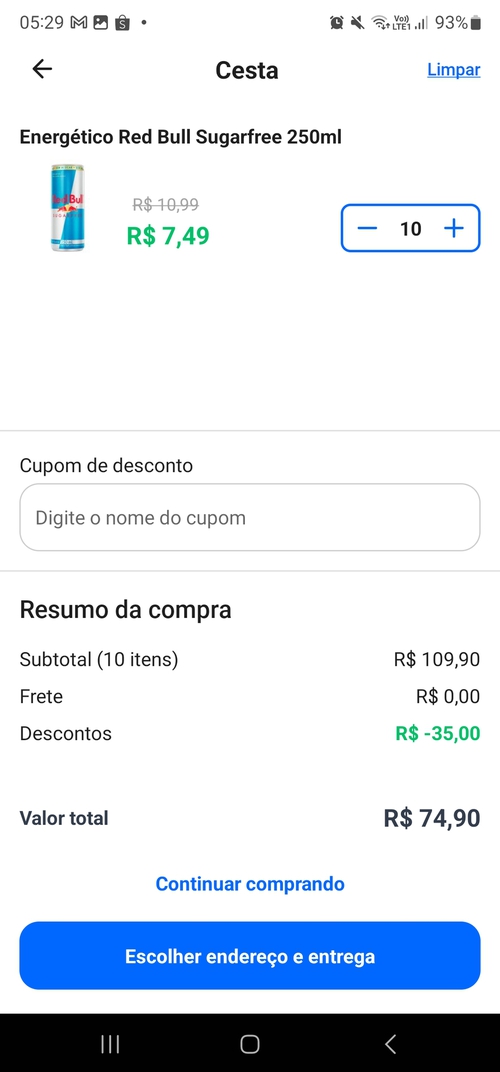 Desconto entra automaticamente ao incluir 10 itens no carrinho. Retirada grátis em SP. Mesma promoção pras opções saborizadas.
