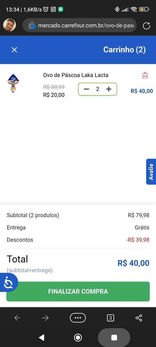 Quando abre está um preço, no carrinho já aparece outro! Carrefour tá osso!
