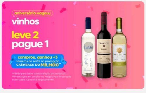 Queria compartilhar a promoção L2P1 em vinhos no Magazine Luiza. Mas só pode Cupom ou Produto específico agora.