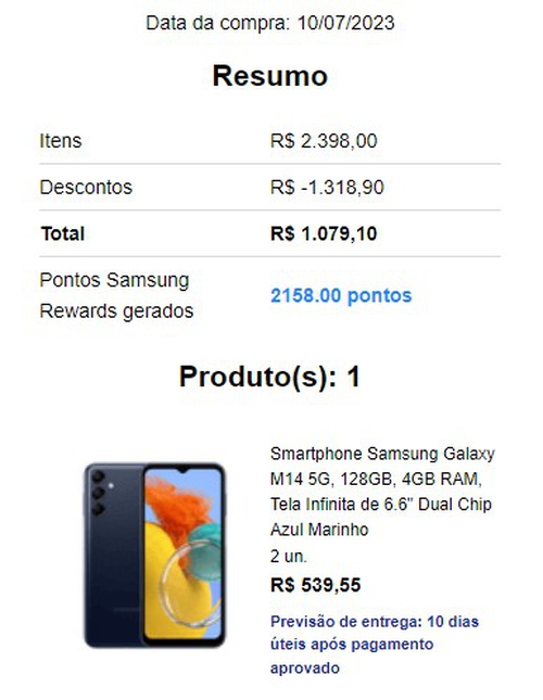 Chegou a notificação do JEC lá na Samsung e no dia seguinte me mandaram um e-mail dizendo que estavam fazendo o estorno. Eles cagaram para o meu caso. Eu não pedi reembolso, pedi o cumprimento da oferta.