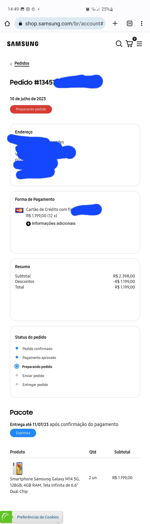 Cancelaram o meu é me reembolsaram na mesma hora o valor na conta, tinha pago em PIX, a Samsung não honra os seus compromissos, nem adianta levar pra frente pq isso não vai dar em nada, ao menos a devolução foi rápida. Não ficou segurando a grana como o Buds 2.