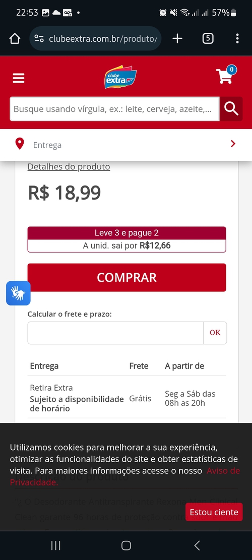 Estoque pode variar de loja pra loja