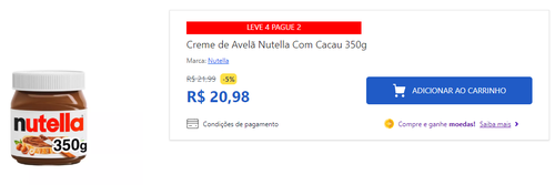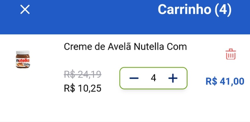 - Comprando 4 unidades de Nutella 350g o preço por unidade sai por R$ 10,49!