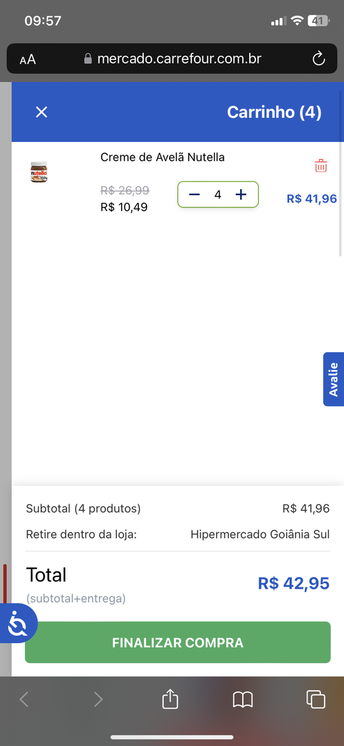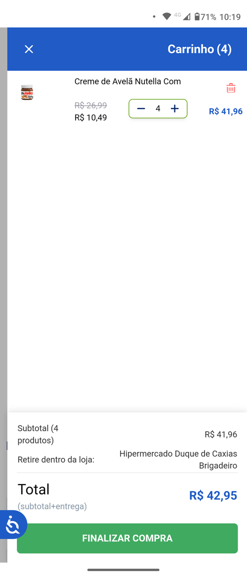 Aqui Rj peguei outros itens, mas a Nutella da indisponível