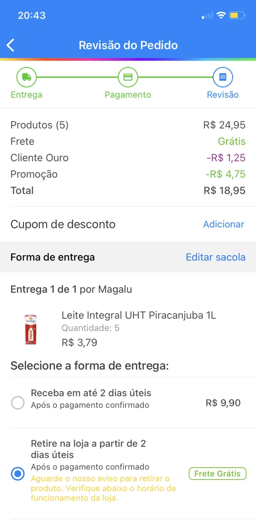 Na minha região, consigo retirar grátis na loja. Todavia, preciso realizar compras de 5 em 5. 😅