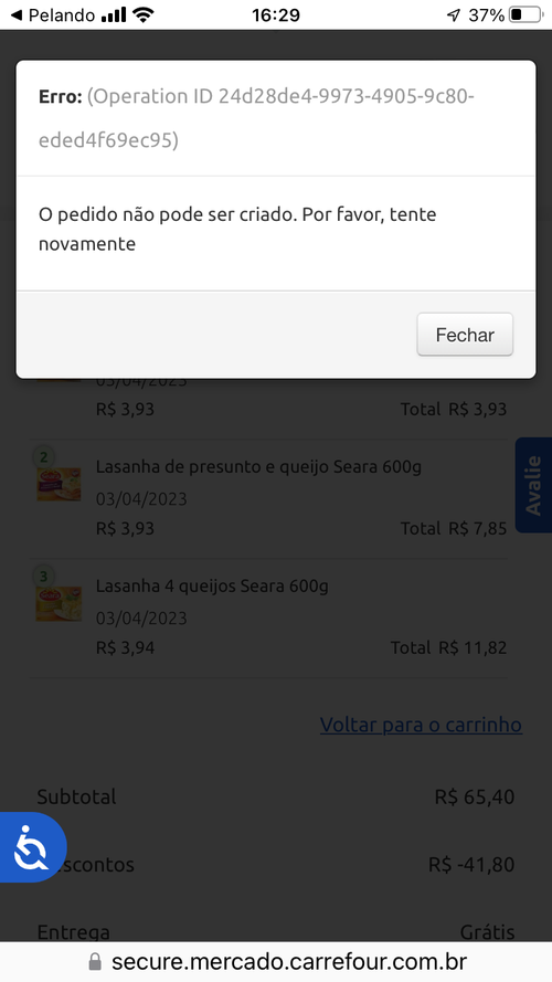 Aqui simplesmente diz que não foi possível criar o pedido, palhaçada