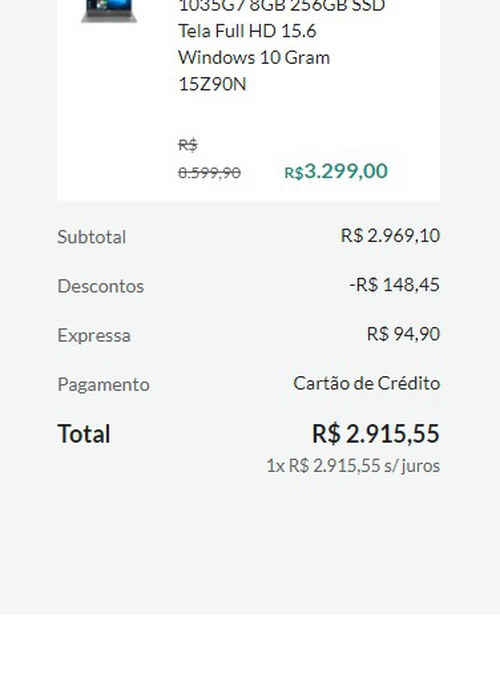 Valor à vista, sem considerar o frete.