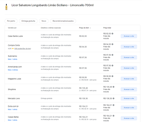 Menor preço segundo o Google Shopping