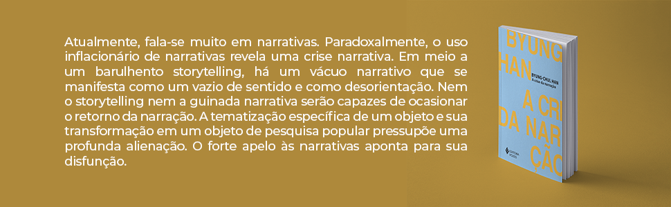 Em um mundo saturado de informações fragmentadas, a narrativa está em crise. Com uma análise aguda e perspicaz, Han examina como a sociedade contemporânea está perdendo a capacidade de criar e apreciar narrativas significativas. Explorando os impactos desse fenômeno na cultura, na política e na tecnologia, ele revela os desafios e as consequências da era pós-narrativa.