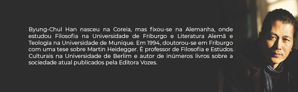 Byung-Chul Han nasceu na Coreia, mas fixou-se na Alemanha, onde estudou Filosofia na Universidade de Friburgo e Literatura Alemã e Teologia na Universidade de Munique. Em 1994, doutorou-se em Friburgo com uma tese sobre Martin Heidegger. É professor de Filosofia e Estudos Culturais na Universidade de Berlim e autor de inúmeros livros sobre a sociedade atual publicados pela Editora Vozes.