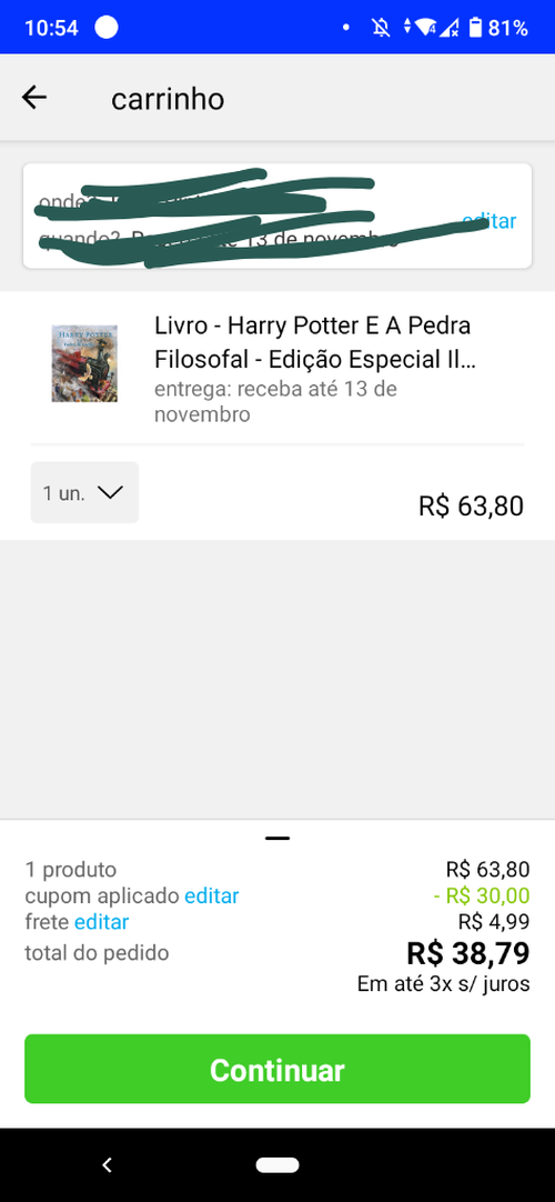 "PRAVOLTAR: R$30 OFF em pedidos feitos no Submarino nas compras acima de R$60 com o cupom PRAVOLTAR; Apenas 01 pedido por CPF; O cupom de desconto não é válido para gift cards; Válido de acordo com o seu histórico de compras no Submarino, desconto aplicado no check-out; Promoção válida até às 23h59 do dia 30/11/2021 ou até os primeiros 500 pedidos.". Pra mim não rolou.