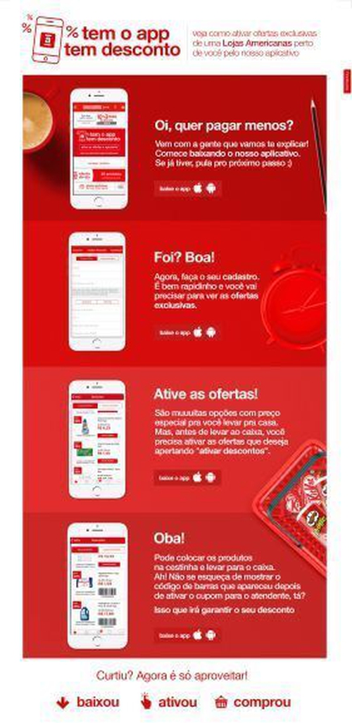 Para ganhar o desconto, é só baixar o APP da Americanas, cadastrar seu perfil, ir até o banner do "tem app tem desconto" e gerar seu cupom. Aí é só apresentar no caixa, com o produto selecionado, e pagar o valor da promoção!