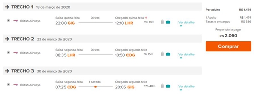 Londres e Paris, na mesma viagem, saindo do Rio de Janeiro. Todos os trechos, com taxas incluídas, a partir de R$2.060