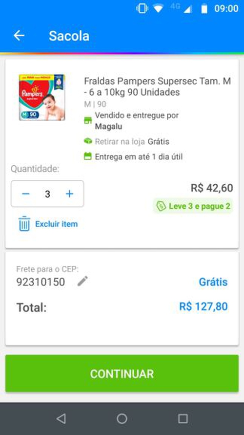 R$ 42,60 * 3 pacotes = R$ 127,80