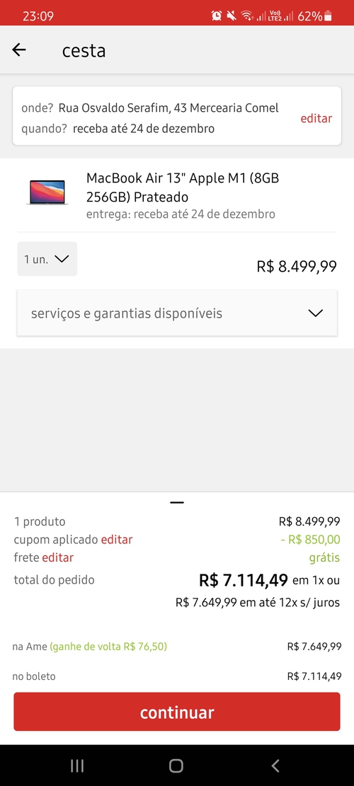 Vendido por Americanas