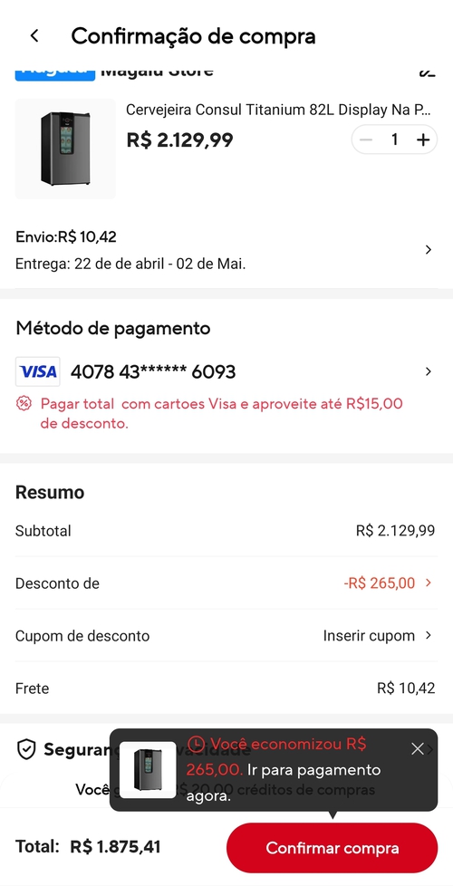 [Magalu] Cervejeira Consul Titanium 82L Display Na Porta - 220V