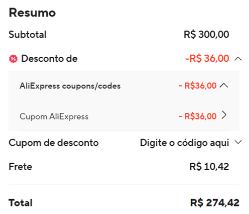 Aqui o cupom não entrou