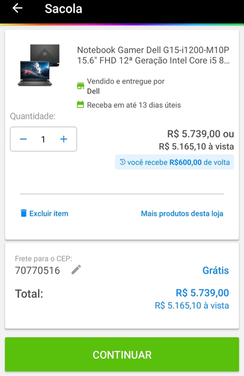 So no app. Valor no pix ou magalupay com cliente ouro e R$600 de volta no magalupay. Valor pode ser sacado