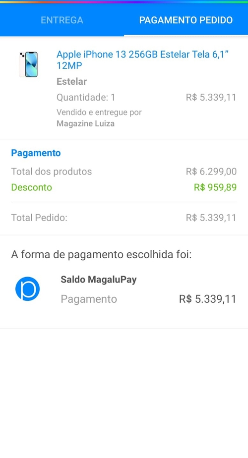 [Magalu Pay R$ 5.339,11] Apple iPhone 13 256GB Estelar À VISTA APP
