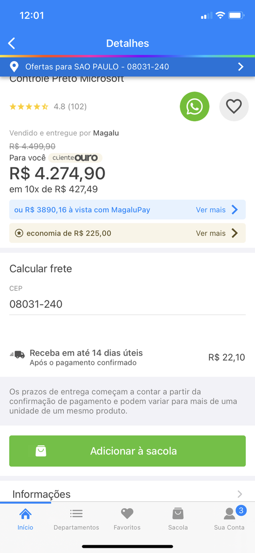 Até que enfim uma vantagem em ser Ouro. Muito dificil ter um preço bom na magalu, não dão vantagem pra nada, nem pro cartão da loja nem magalupay