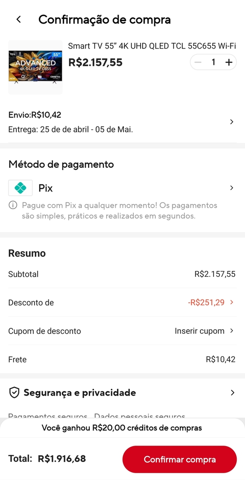 Comprei. Obg. Justamente hj tá a precisando comprar uma tv e aproveitei essa baita promoção.