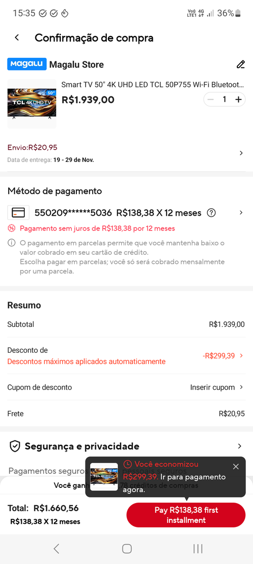 Parece zoeira mas não é com desconto sai a 1690 mesmo, precisei vir aqui para pedir obrigado por quem postou
