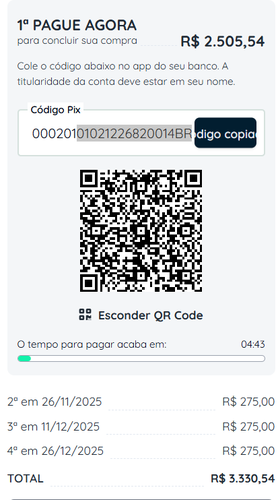 Po, sacanagem demais esse parcelamento pix kkkkk. Ficou 1x de 2500 e o resto em 3x