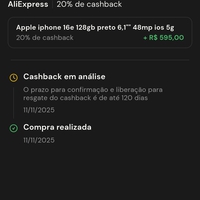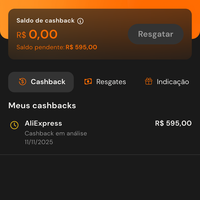 Meu cashback apareceu como pendente. Que bom...